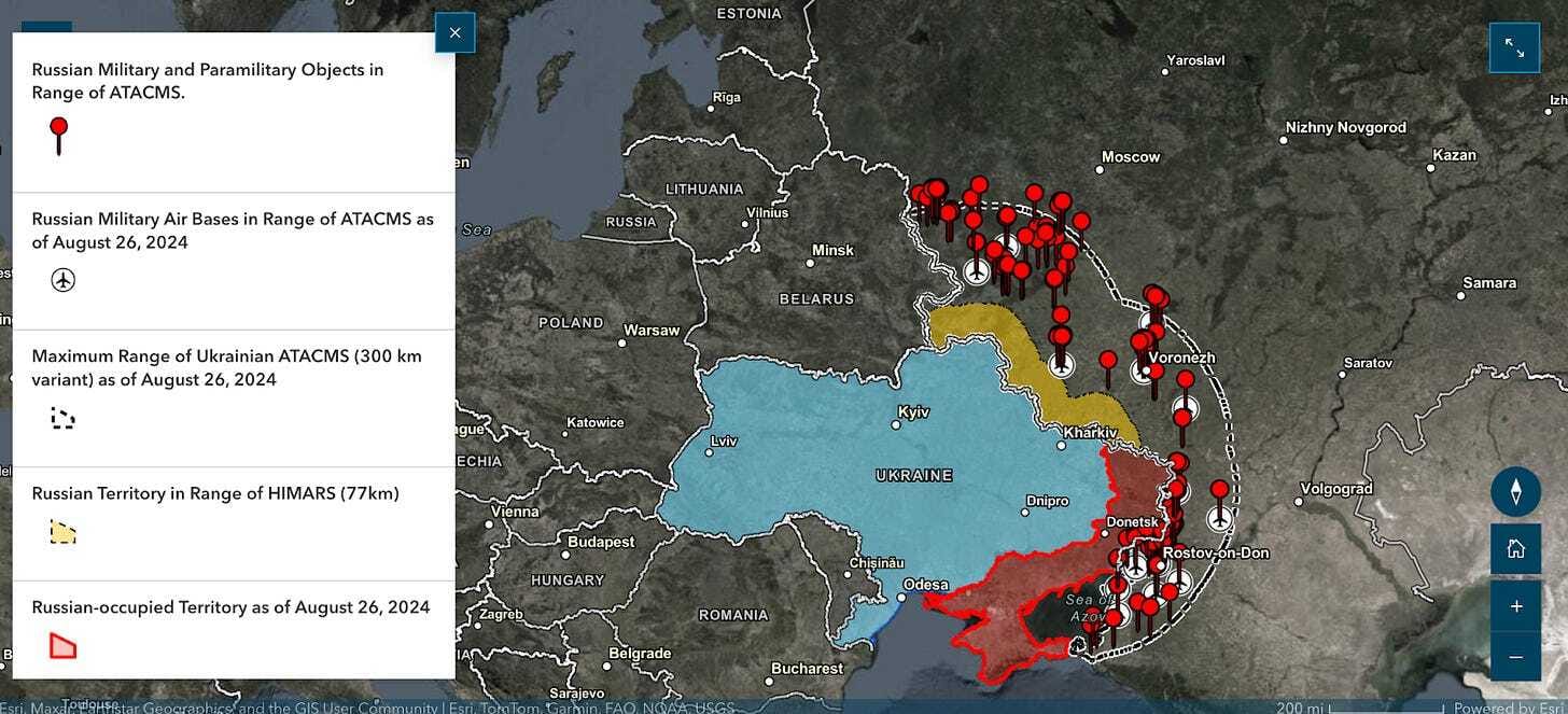 List of Russian military and paramilitary objects in range of ATACMS as of August 26, 2024. Source: Screenshot from the Institute for the Study of War