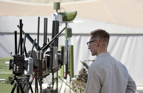 Electronic warfare systems are displayed during an exhibition of military equipment as part of the event 'From Idea to Soldier Platform' in Kyiv. Photo credit should read Kaniuka Ruslan/Ukrinform/Future Publishing via Getty Images