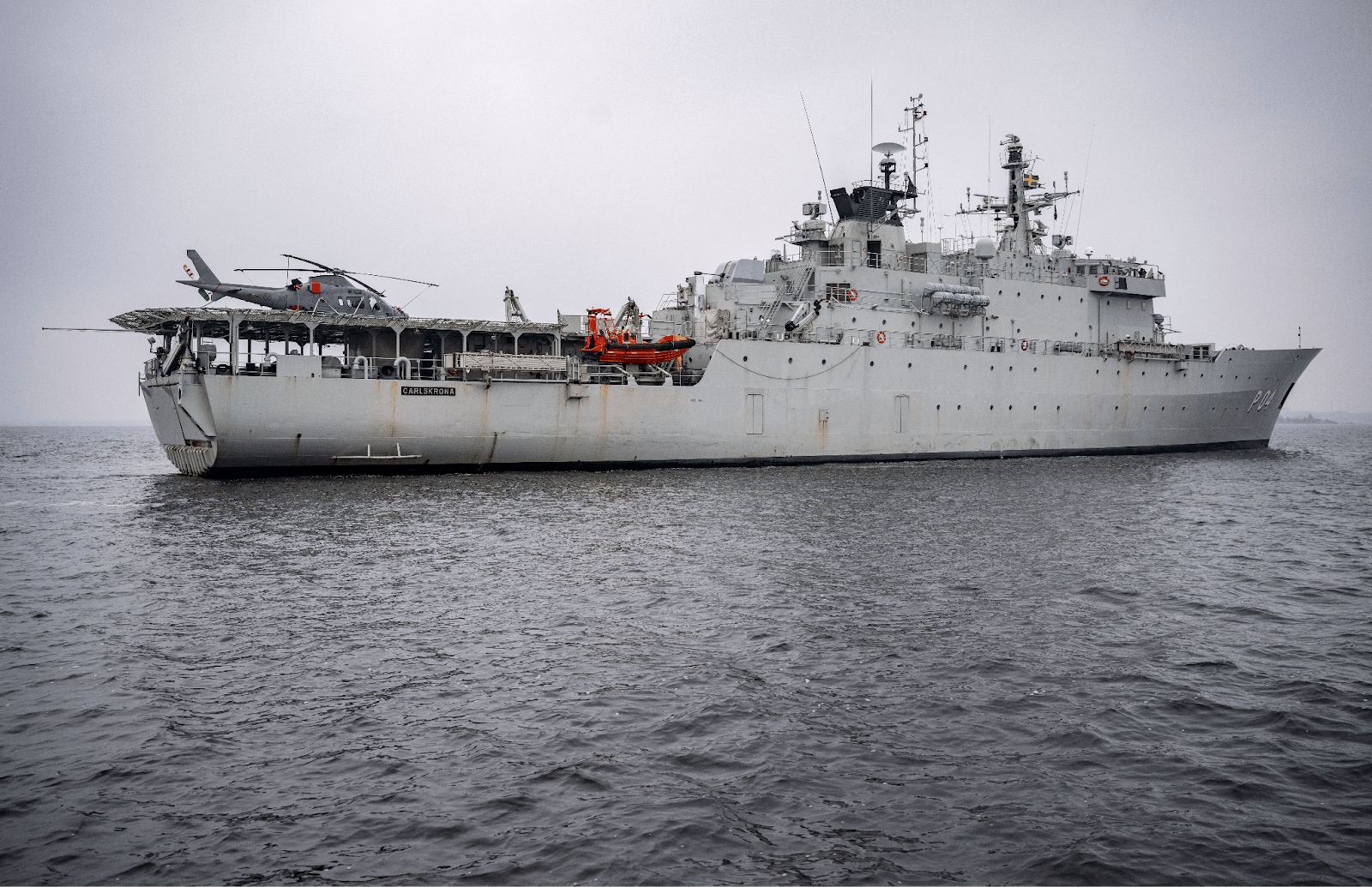Swedish patrol vessel HMS Carlskrona, part of Baltic Sentry. (Photo by Photo by Johan Nilsson/TT News Agency/AFP via Getty Images.)