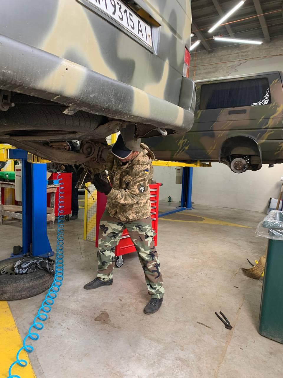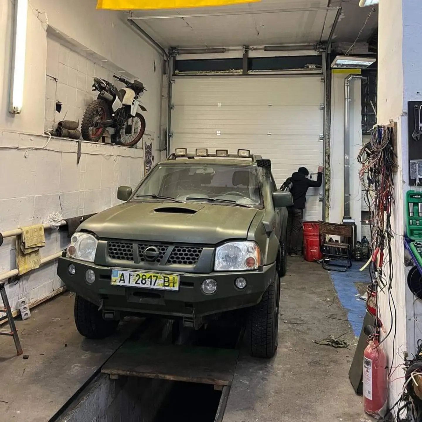 Kyiv-based mechanic shop 'Vsiudykhid' while repairing a military pick-up. Picture: 'Vsiudykhid' /Facebook