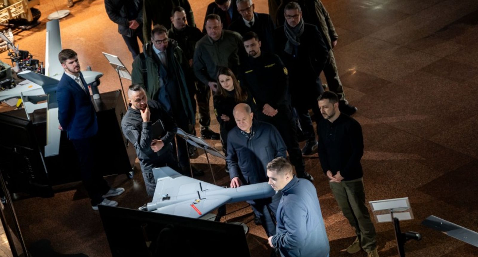 Newly-developed drones were shown during visit of German counselor Olaf Scholz to Kyiv. Photo by Ukrainian presidential office.